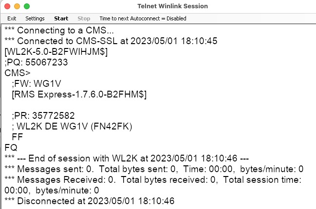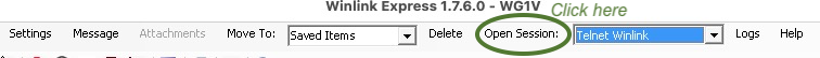 Assuming your computer has in internet connection, connecting via the internet is the easiest way to send and receive email. You connect using Telnet by selecting Telnet Winlink from the pull down menu next to the Open Session menu item, and clicking Open Session as shown in Figure 10.