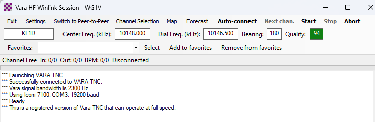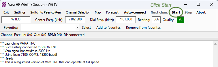 Click Start in the VARA session window to contact the server you selected as shown in Figure 20.